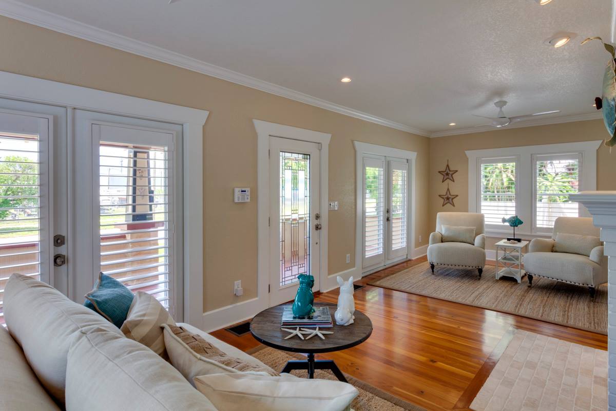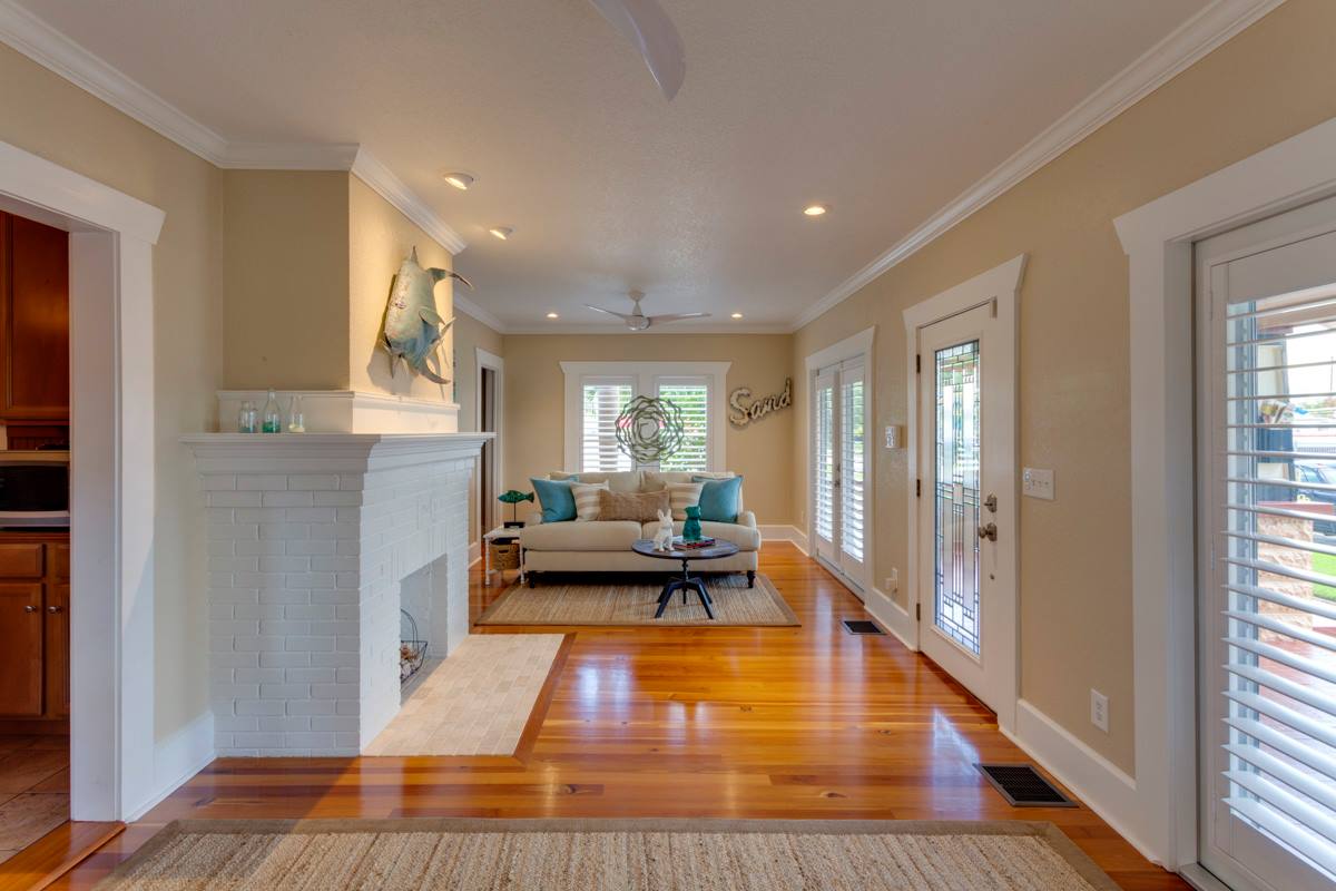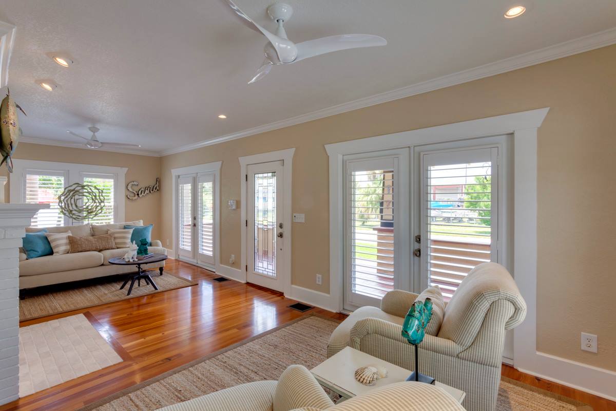 The team also paid attention to the structural elements of the house, by re-framing the walls, adding structural piers under the house, and jacking the house to a level elevation. The new windows and doors not only provide better energy efficiency but also allow natural light to flood the space, making it feel bright and airy. Recessed lights were added to brighten up the space and a new fireplace hearth and a fresh coat of paint was added to give the room a fresh and simplistic feel. Plantation shutters were added to give the room a fresh and simplistic feel. Quality Home Renovators did an incredible job of making this space both functional and beautiful.
